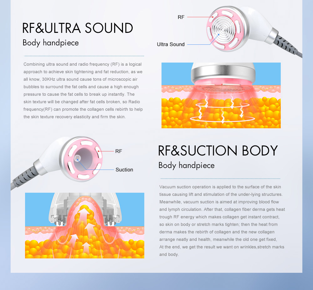 Кавітація - ультразвукова безопераційна ліпосакція, унікальний метод видалення жирових відкладень без хірургічного втручання. Це одна з найпопулярніших і затребуваних апаратних процедур для тіла. А у нас кавітація поєднується ще й з РФ (радіохвильовим) ліфтингм та інфрачервоним випромінюванням, який проводиться одночасно на вибраній ділянці тіла таким чином збільшуючи в рази ефект від процедури та оновлюючи колагенові волокна та забезпечуючи відновлення та розгладження шкіри (RF & Ultra Sound).